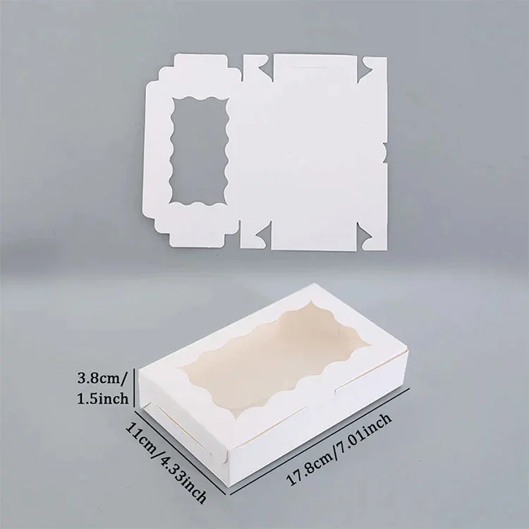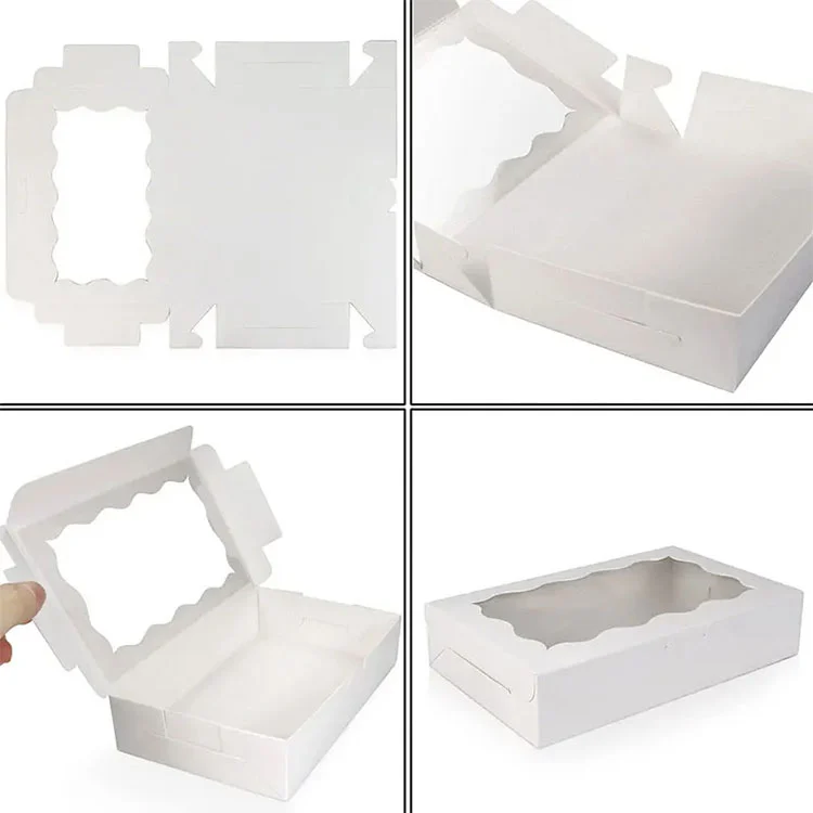 透明な窓を備えたこれらのエレガントなケーキ ボックスでベーカリーのパッケージをグレードアップし、おいしいペストリー、チョコレート、カップケーキ、ケーキを見せるのに最適です。誕生日、結婚式、バレンタインデー、その他の特別な機会に最適なこれらのボックスは、機能性と高級感を兼ね備えています。高品質の素材で作られているため、鮮度を確保しながらブランドのプレゼンテーションを強化します。ロゴ、色、デザインで完全にカスタマイズして、思い出に残る開封体験を作り出します。