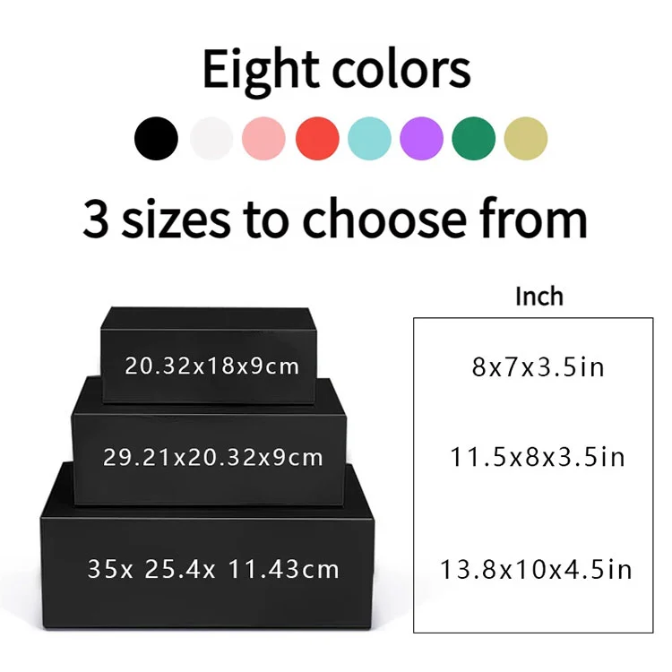 製品を手に取るずっと前から、色によってその製品の感触が決まります。だからこそ、当社では、落ち着いた黒やお祝いの深紅から、柔らかく現代的なパステルまで、考え抜かれて開発された 8 つの色合いを提供しており、それぞれにさまざまなギフトのニーズに合わせて 3 つのサイズが用意されています。また、パッケージはブランドと真に一致していると感じられる必要があるため、きれいなオフセット印刷、微妙なエンボス加工、金属箔のヒント、またはスポット UV の静かなタッチなど、パッケージを独自のものにするための穏やかで表現力豊かな方法を提供します。あらゆるディテールが、パッケージがブランドの声を柔らかくはっきりと伝えるために役立ちます。